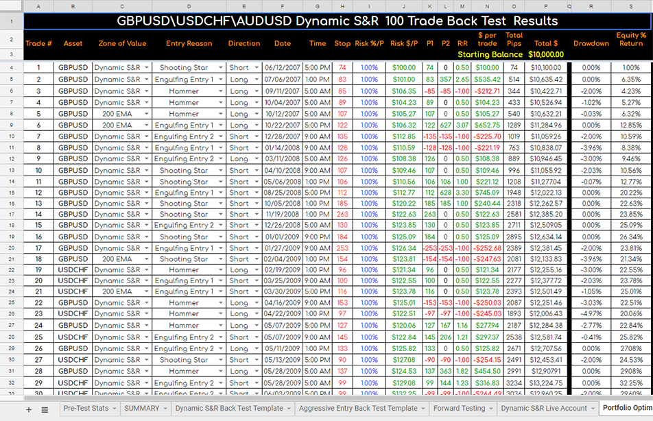 Here are some screenshots of what a good spreadsheet might look like. This is not my spreadsheet – my spreadsheet is much uglier and rudimentary as I am not an Excel wizard, but my friend and closest trading buddy Pascal is.