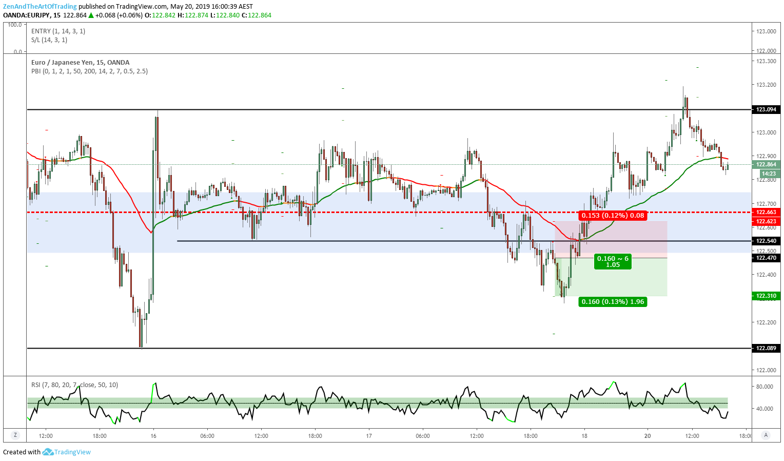 I was looking for any excuse to get short EUR/JPY when it began to hold below that Daily support level at 122.663, so when I got a valid pullback setup I was ready to pounce.